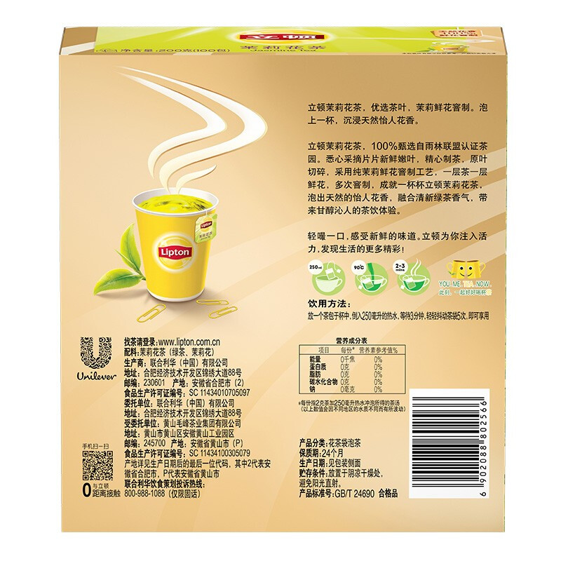 - 商品名称:立顿 茉莉花茶 2g*100包
