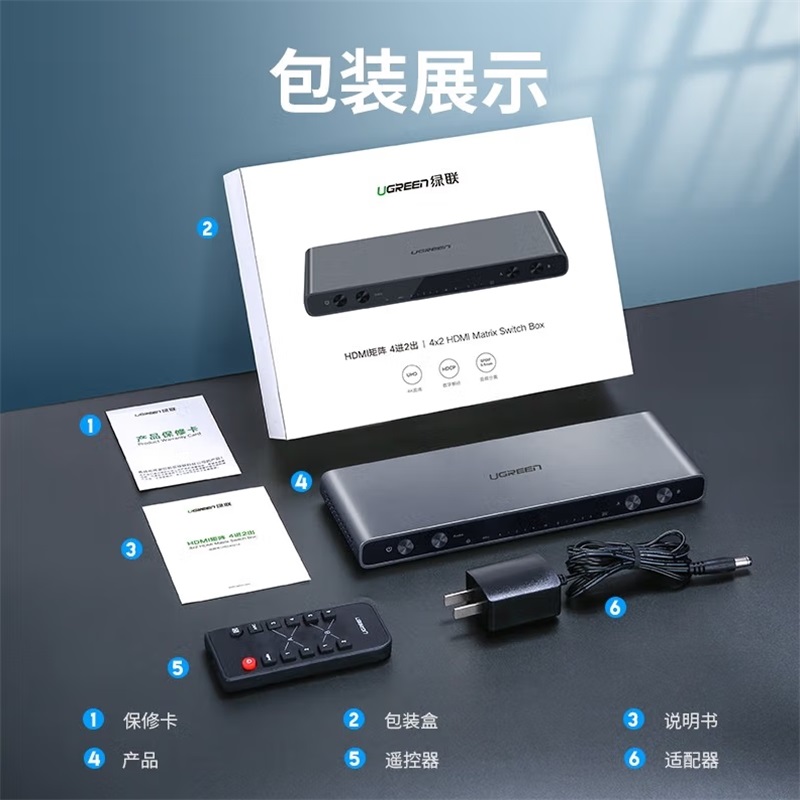 - 商品名称:绿联HDMI 4进2出矩阵分配器 40216