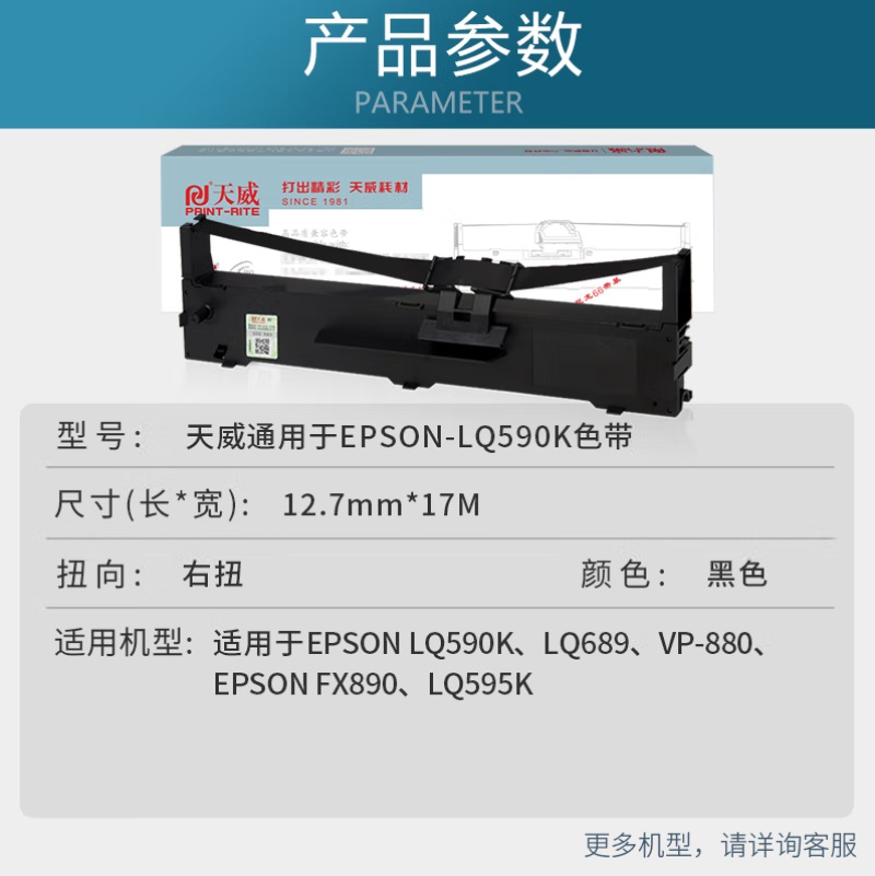 - 商品名称:天威 爱普生FX890/LQ590/LQ590K-BK-17m 12.7mm R色带框