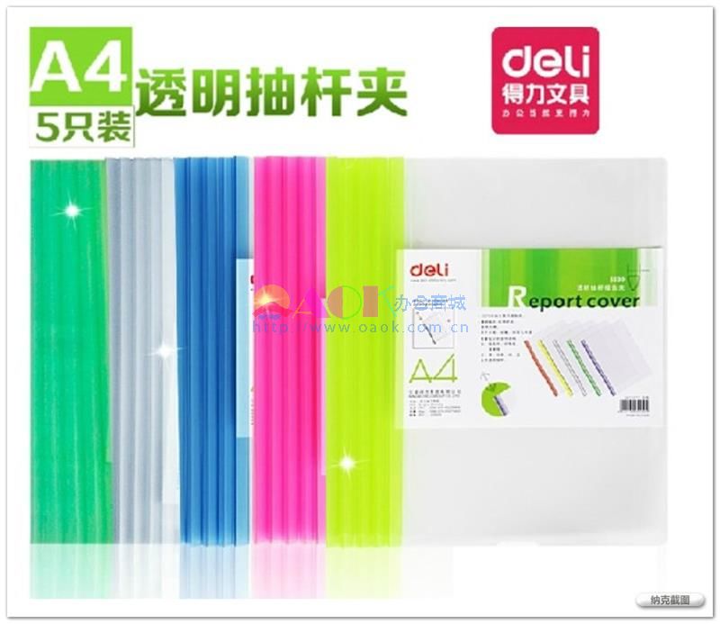 - 商品名称:得力 A4透明PP抽杆文件夹 0.16mm材质<白色> 5个装