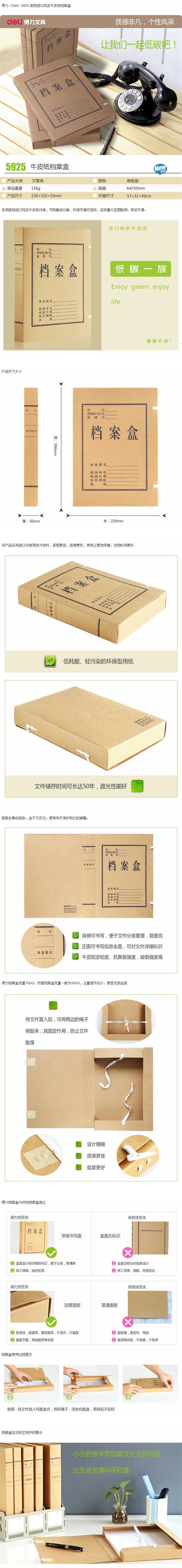 - 商品名称:得力 A4 50mm高档进口纯浆牛皮纸档案盒 10个装