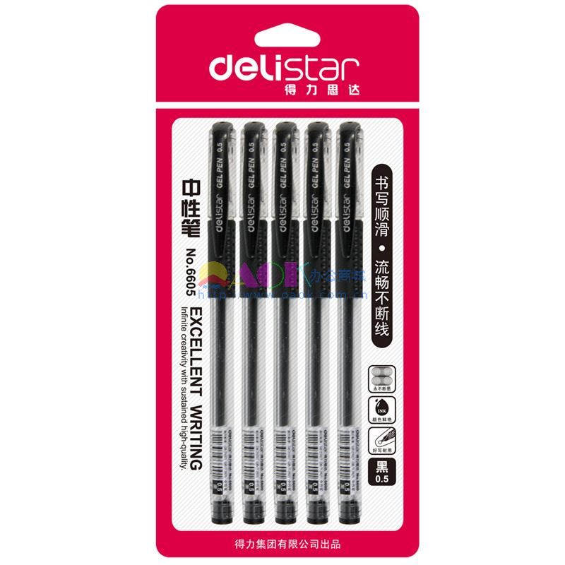 - 商品名称:得力6605中性笔 0.5mm<黑色>5支卡装
