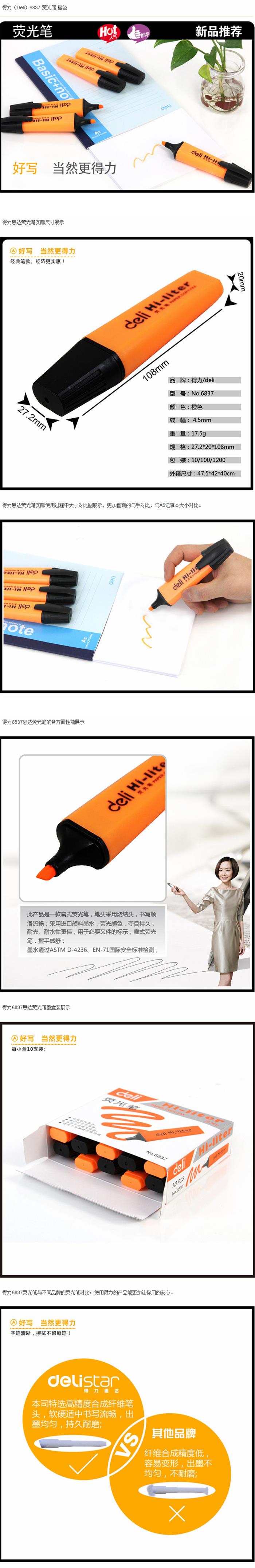 - 商品名称:得力 荧光笔<橙色>10支 橙色