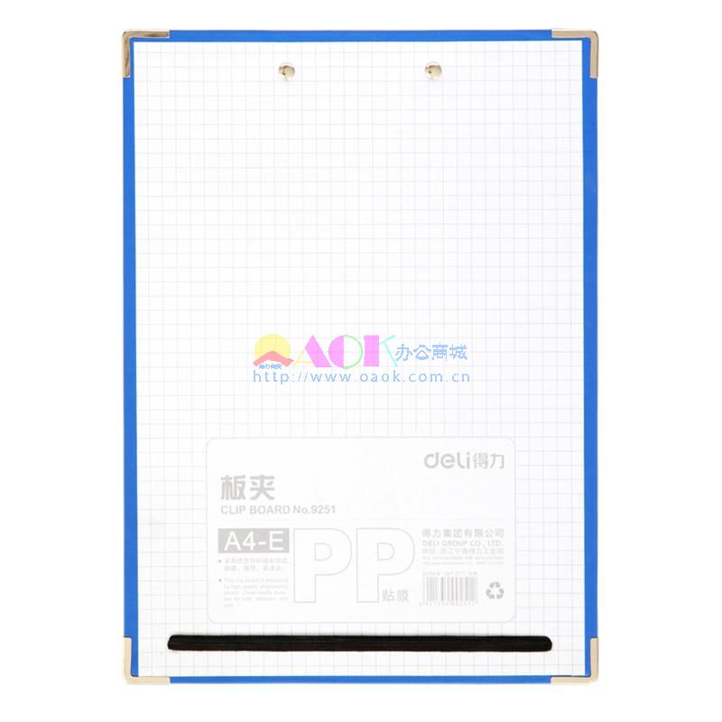 - 商品名称:得力 9251 PP纸板夹/书写板夹 A4(235*320mm)<蓝色>