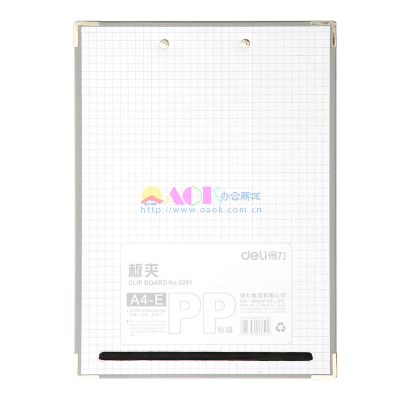 - 商品名称:得力 9251 PP纸板夹/书写板夹 A4(235*320mm)<灰色>