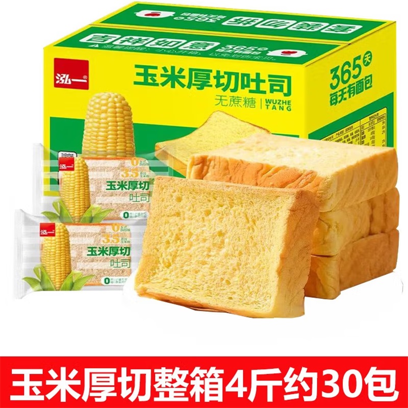 - 商品名称:泓一无蔗糖玉米厚切吐司面包 2kg/箱