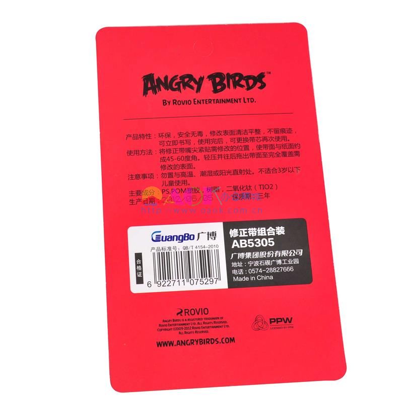 - 商品名称:广博愤怒小鸟 卡通组合装修正带 AB5305