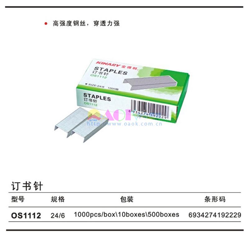产品规格为:24/6,1000枚/盒,10盒/包,500盒/箱。