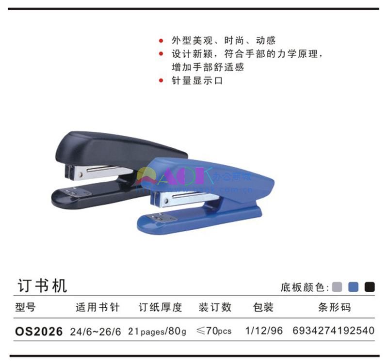 - 商品名称:金得利 订书机 OS2026(订纸厚度:21pages/80g)