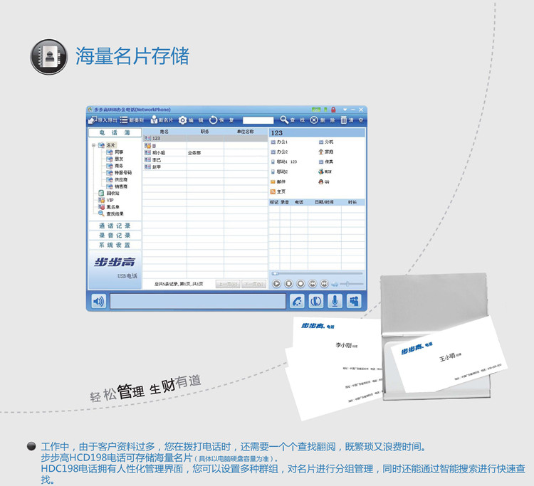 步步高HCD198智能录音电话,海量存储空间、智能管理系统
