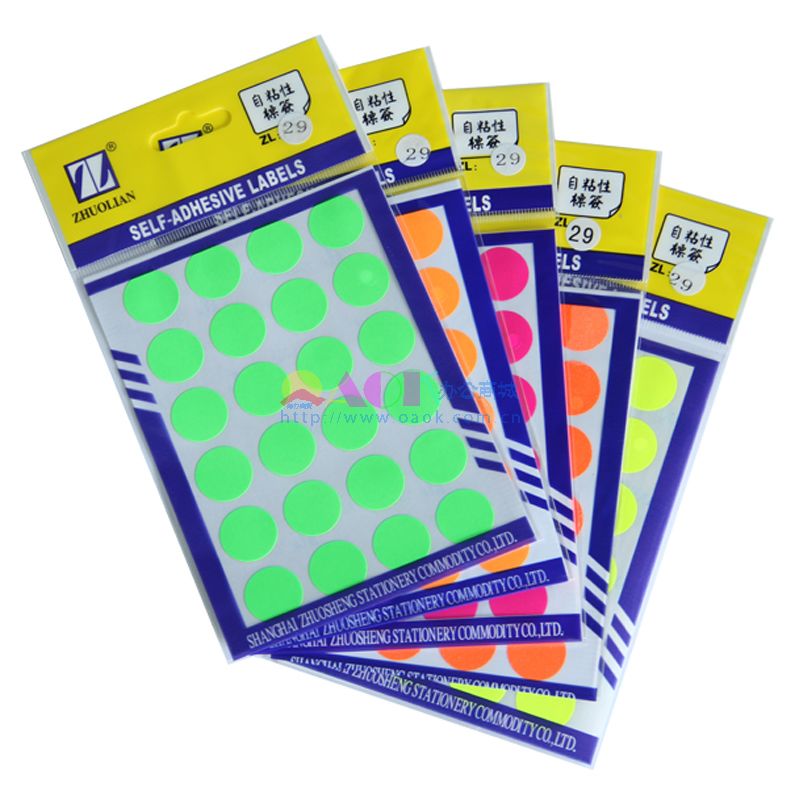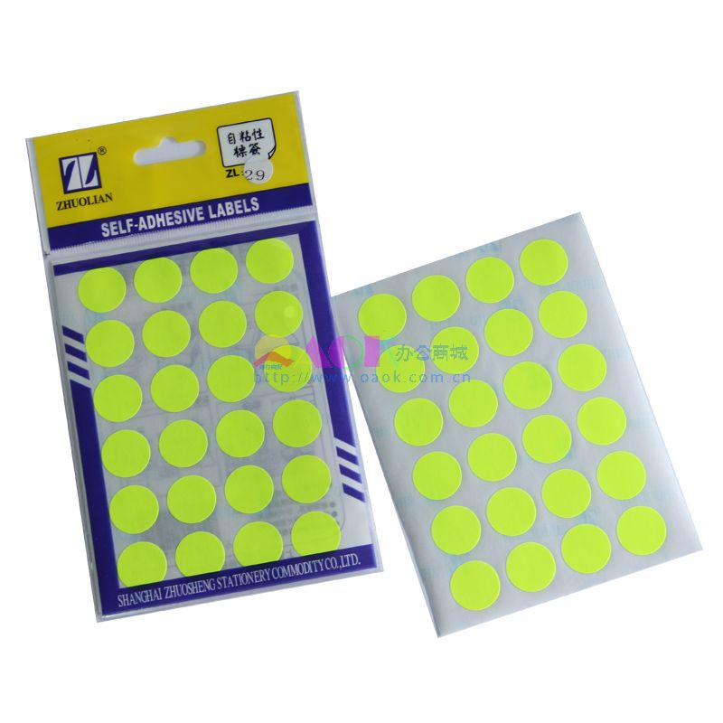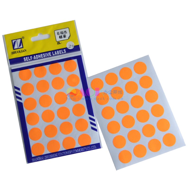 - 商品名称:卓联 ZL29 自粘性标签 直径16mm 荧光 24*6张/本