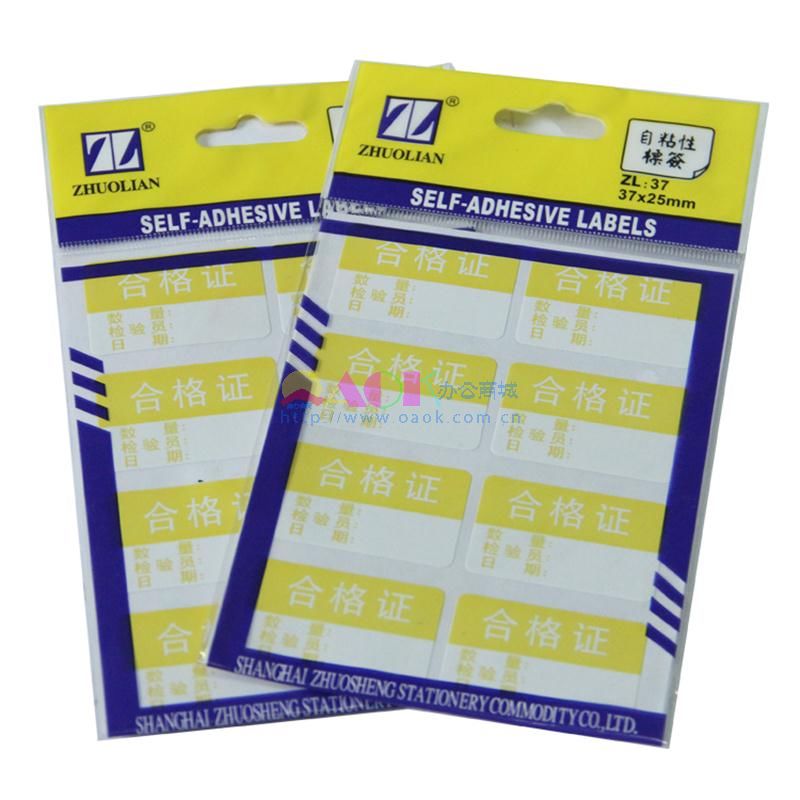 - 商品名称:卓联 ZL37 自粘性标签38×25mm 黄色(合格证)8*12张/本