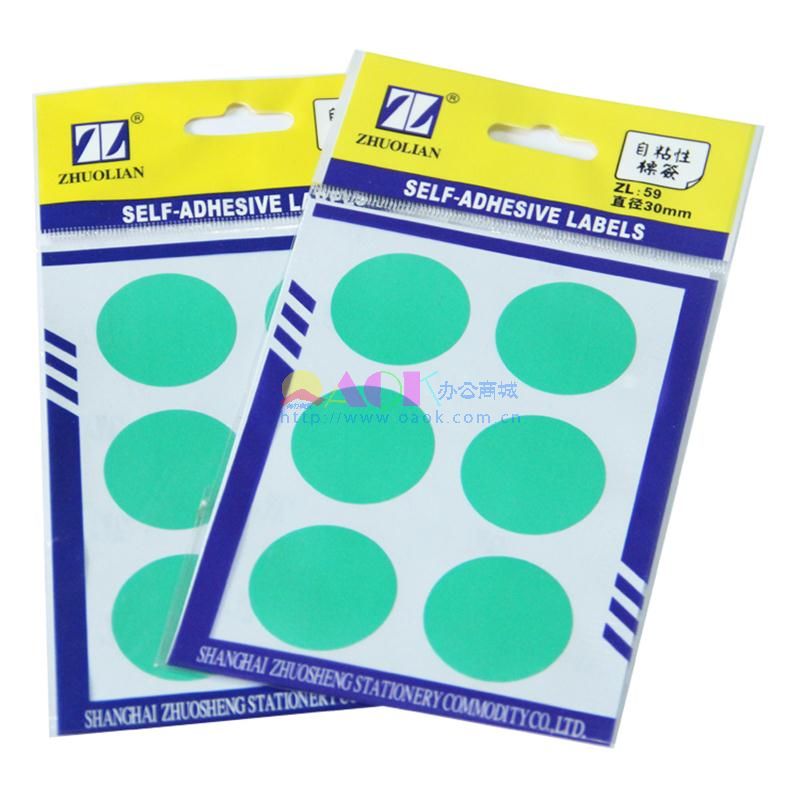 - 商品名称:卓联 ZL59 自粘性标签直径 30mm 绿色 6*12张/本