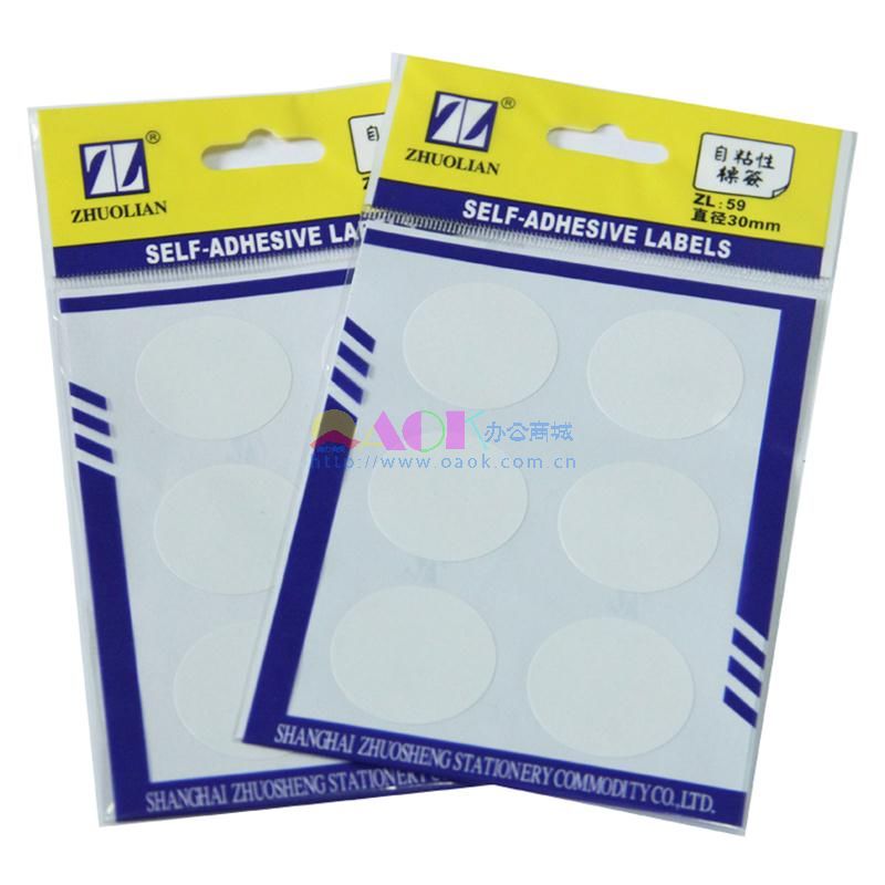 - 商品名称:卓联 ZL59 自粘性标签直径 30mm 白色 6*12张/本