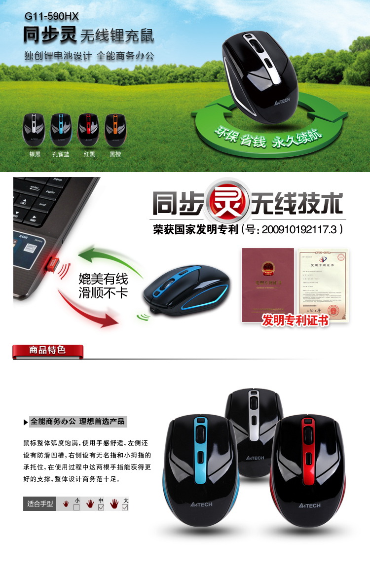 - 商品名称:双飞燕 A4Tech G11-590HX 充电无线鼠标 银黑