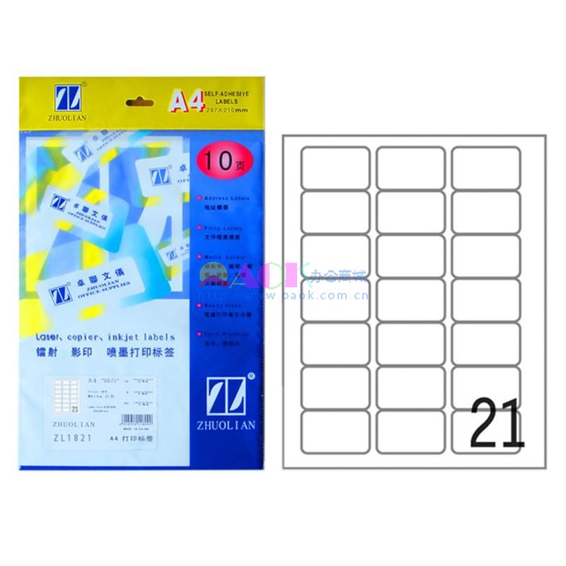 - 商品名称:卓联10页打印标签 63.5*38mm ZL1821A英文底