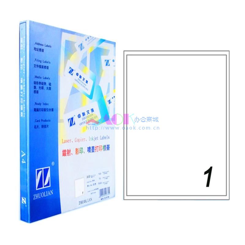 - 商品名称:卓联100页打印标签 210*297mm(进口)ZL2601A英文底