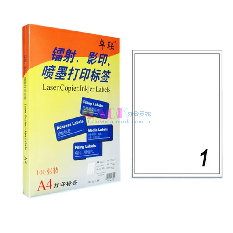 - 商品名称:卓联100页打印标签 210*297mm ZL2601C黄底
