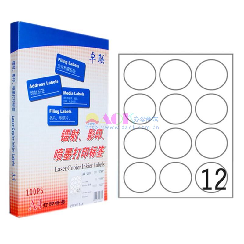 - 商品名称:卓联 100页打印标签 直径63.5mm ZL2712B中文底