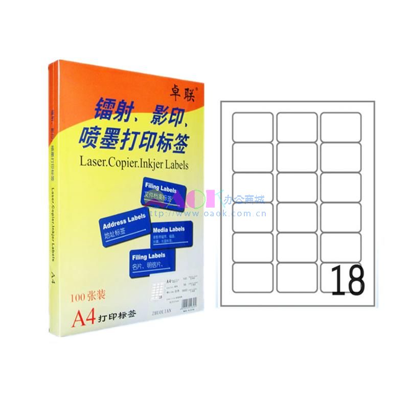 首页 > 办公用纸 > 打印纸 > 电脑标签打印纸 > 卓联100页打印标签 63.5*46.5mm ZL2818C黄底