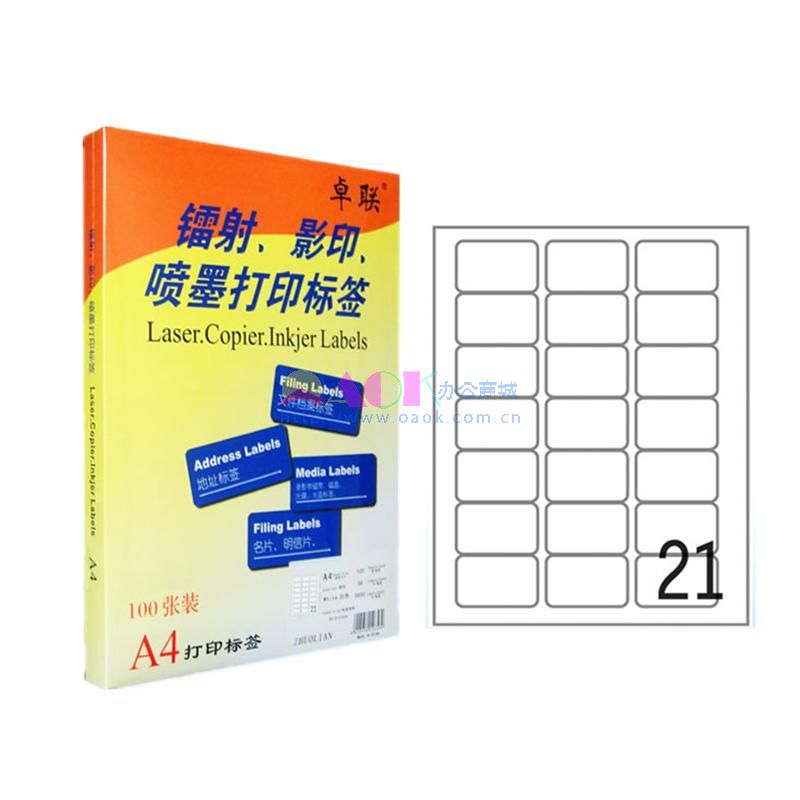 - 商品名称:卓联100页打印标签 63.5*38mm ZL2821C黄底