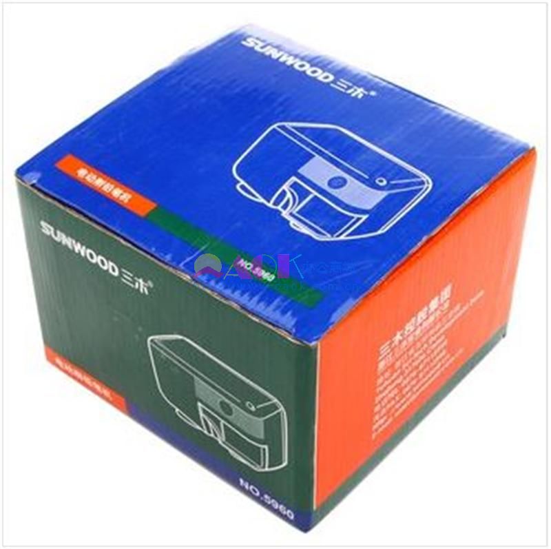 Sunwood三木 电动削铅笔机--5960-粉色。 型号:三木(SUNWOOD)电动削铅笔机--5960-粉色包装数量:1只/盒颜色:粉色包装尺寸:110×140×110mm 重量:1.4kg产品特征:专为设计院,企业设计;安全塑料外壳,保证健康;优质钢材制造,削切均匀;具有过热保护功能