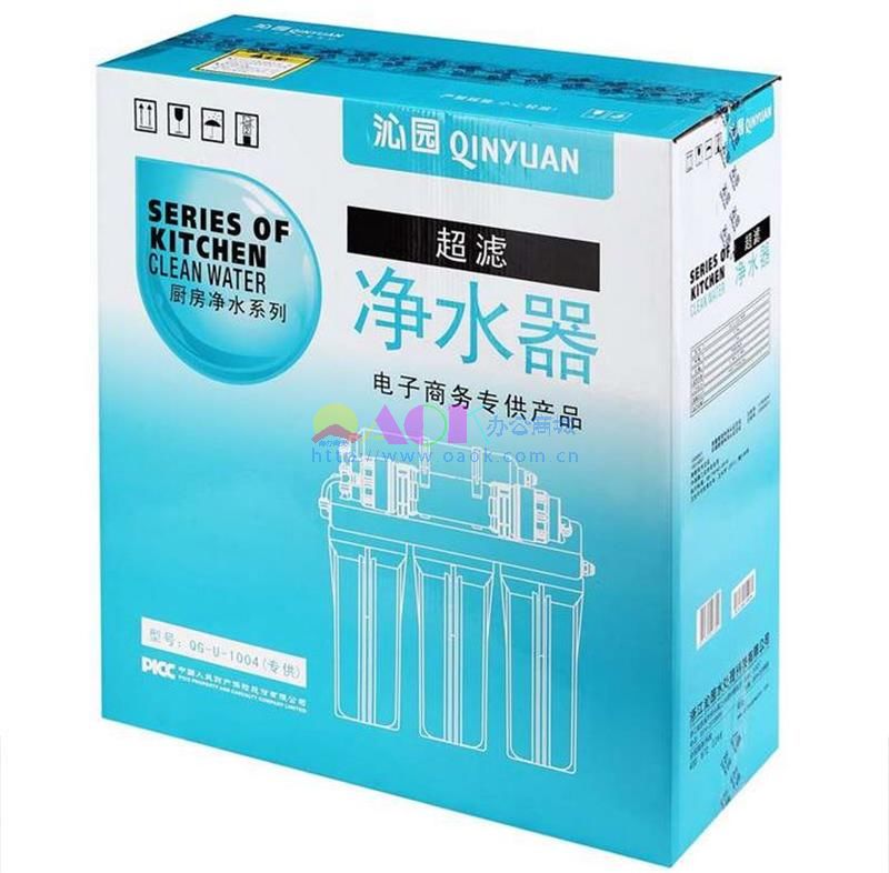 沁园沁园家用超滤净水器QG-U-1004,净水机原理: PP棉、颗粒活性炭、压缩活性炭、超滤膜、后置活性炭,外形尺寸: 430×130×380毫米。主机×1、龙头×1、扳手×1、零件包×1、PE管×1、说明书×1、保修卡×1、合格证×1、维修保养手册×1