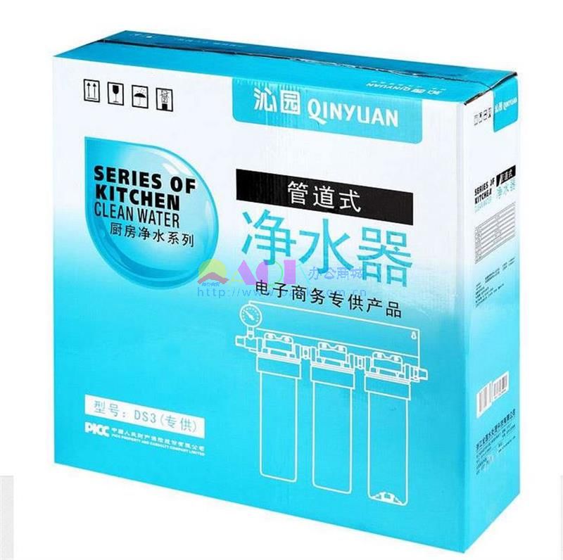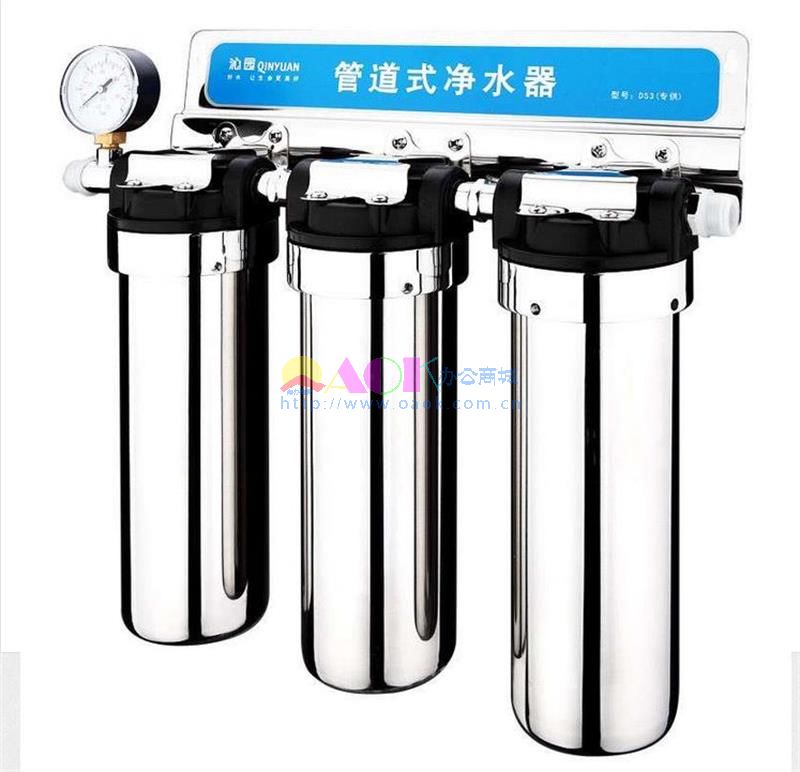 沁园管道式净水器DS3 不锈钢,多级过滤。 外形尺寸: 450×140×460毫米,净水流量: 2.5升/分钟,出水流量: 2.5升/分钟,重量: 6千克。