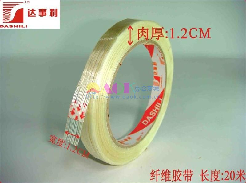 达事利 纤维胶带 1.2CM*20M (24卷×10筒=240卷/箱),厚度1.2CM。