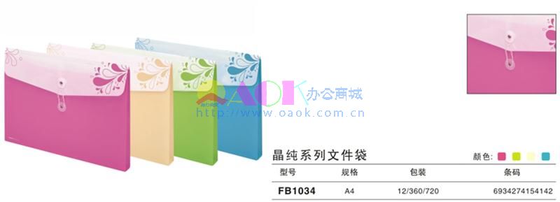 - 商品名称:金得利A4 FB1034 晶纯系列文件袋 绿色 纽扣式