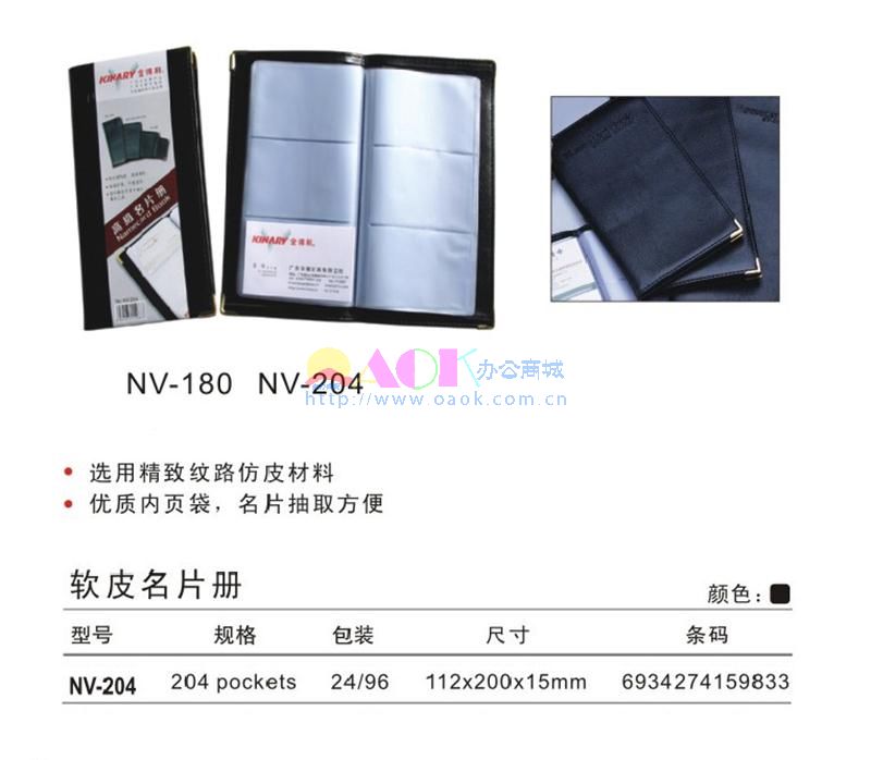 - 商品名称:金得利 NV-204 名片册 容量:204张