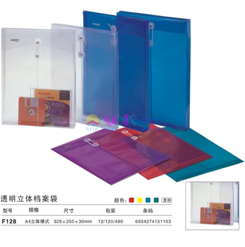 金得利 F128 文件袋 (尺寸:328×250×30mm,A4)透明,产品包装为:12个/小盒,120个/中盒,480个/大盒。