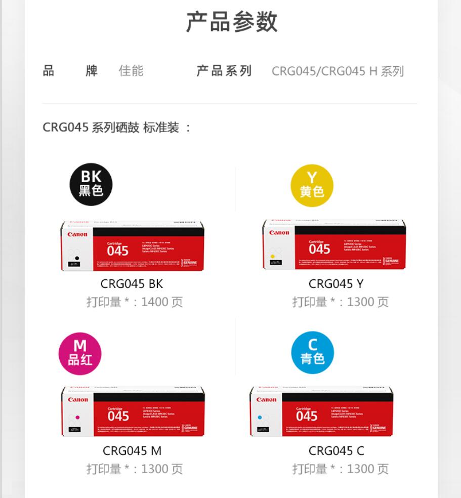- 商品名称:佳能CRG045硒鼓Y黄色(适用MF635Cx/MF633Cdw/MF631Cn)