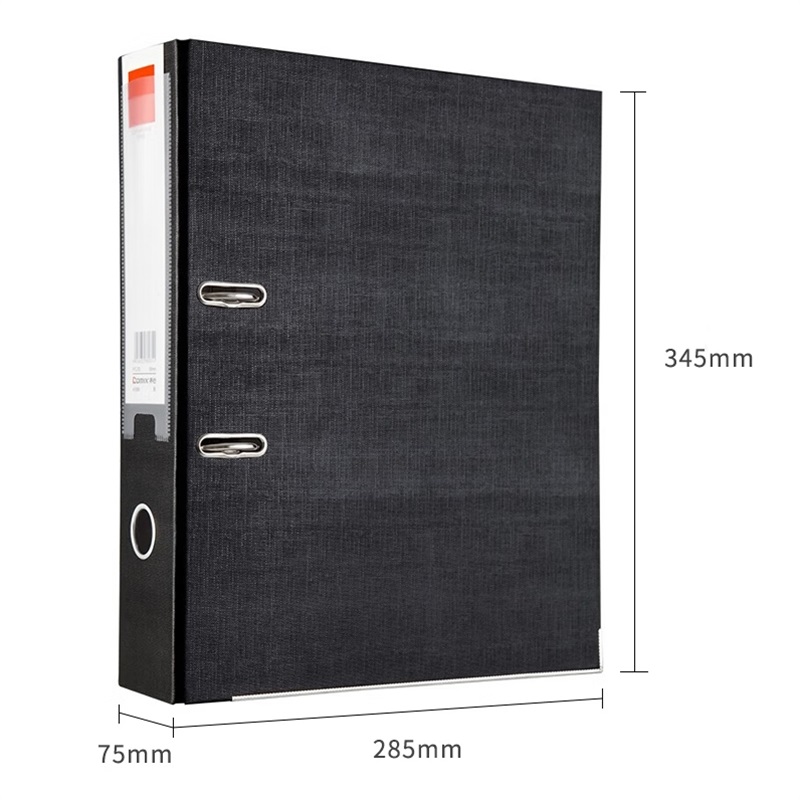 ┃尺寸:长345*宽285㎜┃背宽75㎜┃A4┃容纸量55mm(约500张)┃采用一次性成型灰纸板,平整而轻巧,持久不会变形┃采用国际顶级标准夹具┃可以配合11孔活页袋使用