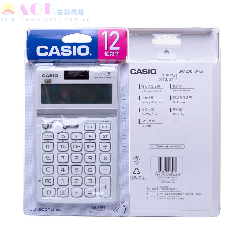 - 商品名称:卡西欧JW-200TW-WE可折式时尚办公计算器 莹雪白