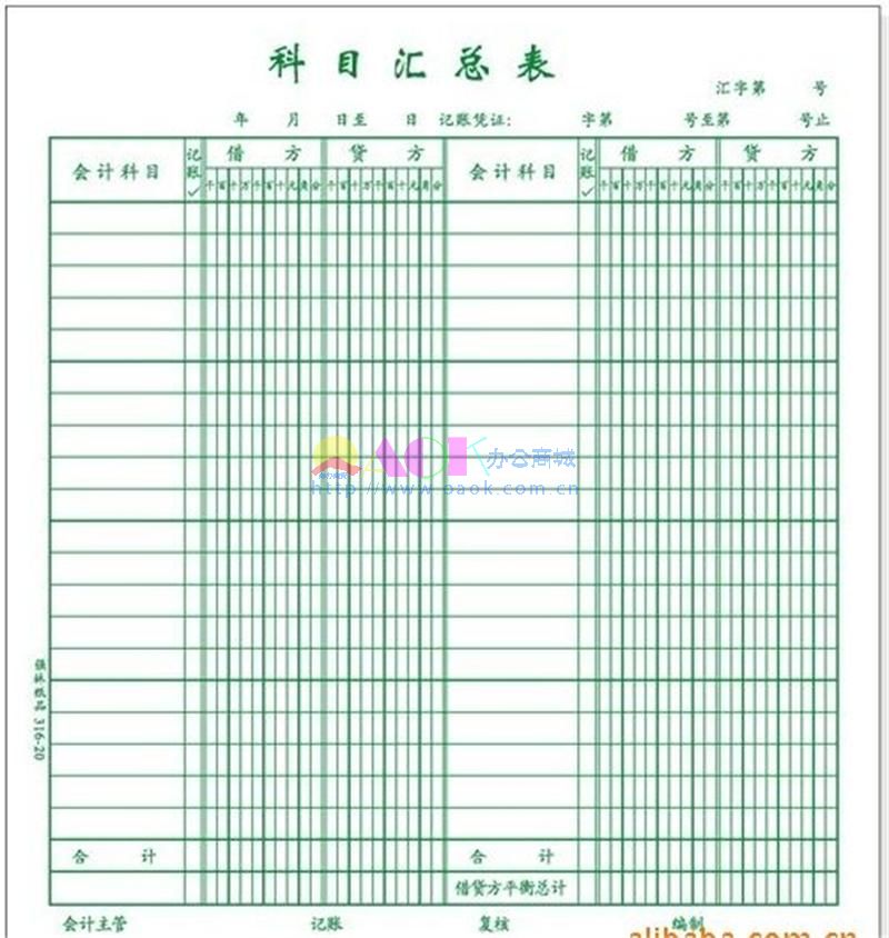- 商品名称:立信 科目汇总表 304-16A