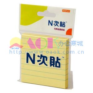 N次贴 横线记事贴 便条纸 76*76mm<黄色>