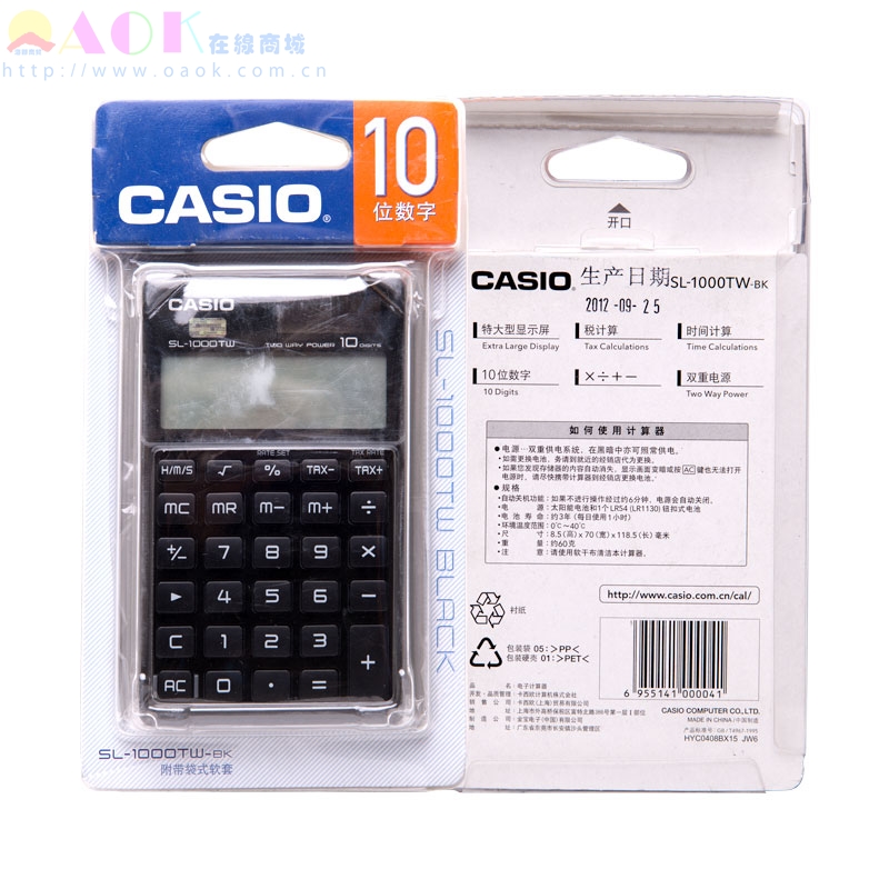 • 商品名称:卡西欧SL-1000TW-BK卡片式时尚办公计算器 黑色