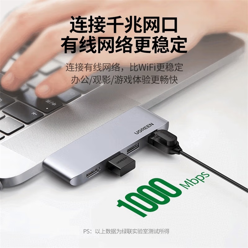 - 商品名称:绿联Type-C转HDMI+千兆网卡+2口USB4K/30Hz 20490