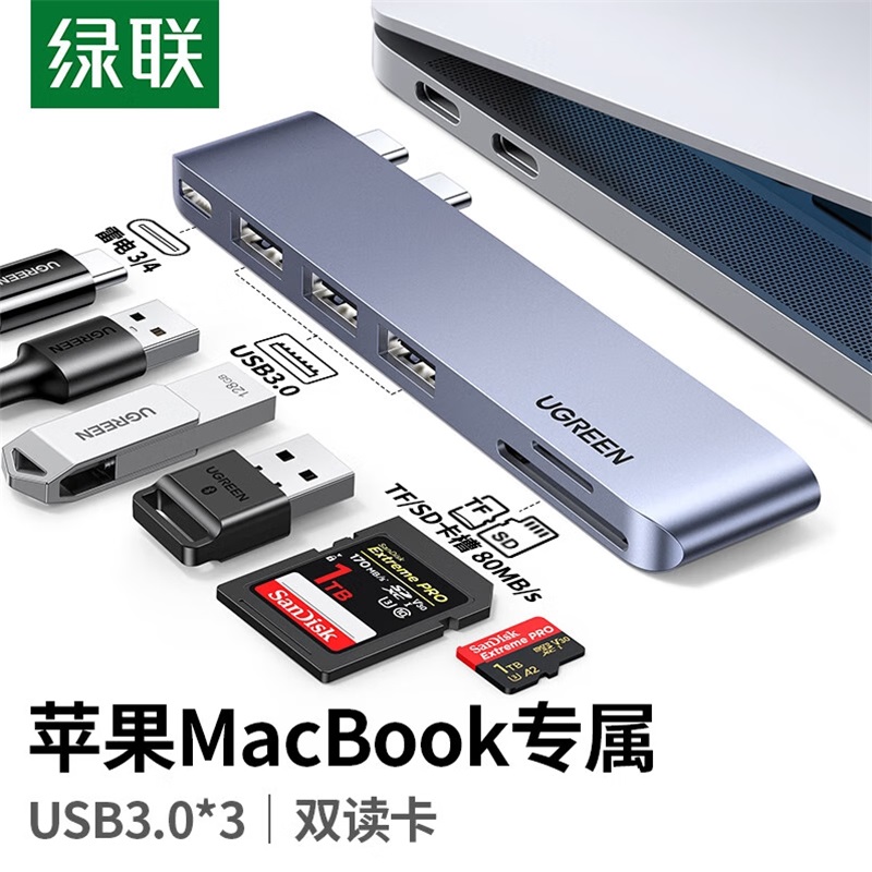 - 商品名称:绿联双Type-C转3口USB分线器+读卡器带PD(直插式)60560