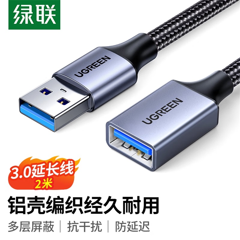 - 商品名称:绿联USB 3.0高速延长线铝合金编织线2米 10497